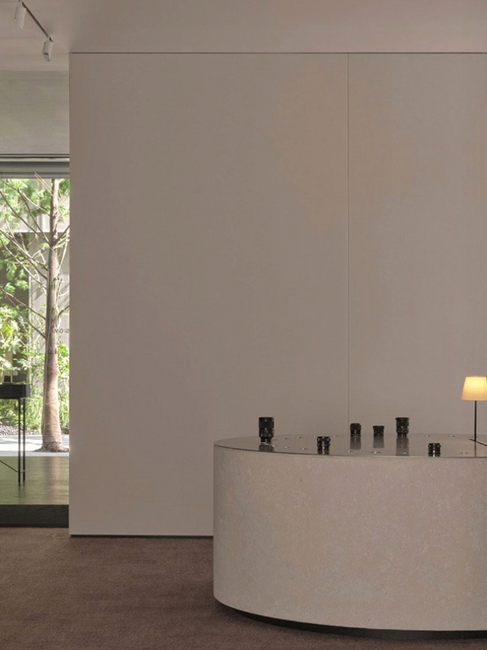 The exhibition and gallery spaces further underscore Sigma's commitment to creativity and innovation. A three-meter-tall, ten-meter-long lens wall features more than 100 bespoke mounts for the brand’s Contemporary, Art, Sports, and Cine lenses, while a circular limestone display table reflects the shape of a camera lens and represents photography’s capacity to encapsulate time. The gallery, elevated to evoke a feeling of ritual, is intended for exhibitions and gatherings, including minimum alterations that prioritize the artwork.