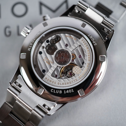 The timepiece is driven by the Nomos calibre DUW 3202, which utilises the Neomatik architecture, featuring an automatic movement with a fully integrated global time complication. The movement, measuring only 4.8mm in thickness, features an in-house escapement and hairspring, a very modest power reserve of 42 hours, and a stop-seconds mechanism. A notable feature on the caseback is the little whale, signifying the case's water resistance.