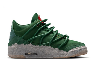 The “Concrete Rose” Air Jordan 3 exemplifies exceptional visual contrast and superior craftsmanship. The sneaker features a subdued green leather upper, departing from conventional color blocking, which offers a grounded and extremely adaptable appearance. This serene green hue elegantly reflects the idea of strength forged under significant pressure, complemented by a robust, textured concrete-like midsole.
